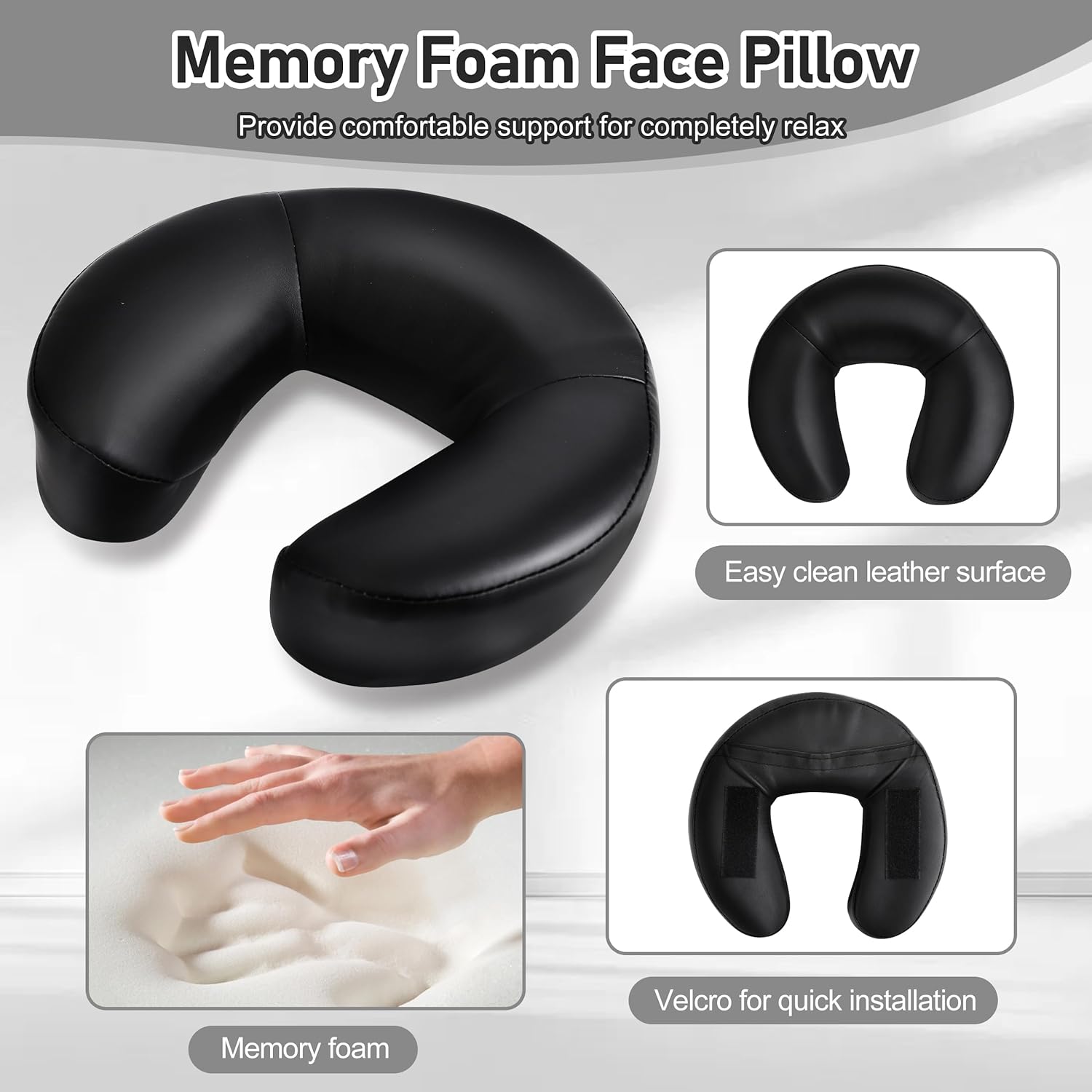 This Bed Massage Headrest (also a Face Cradle for Massage Table) is your go-to solution for home relaxation, massage sessions, or post-eye surgery recovery. Featuring adjustable height (5.5"-17.7") and multi-angle settings, it fits 5.5"-17" thick mattresses to adapt to beds, massage tables, or desks. The memory foam pillow offers plush, supportive cushioning, while the waterproof leather surface is easy to wipe clean. Its upgraded extended base ensures stability (no wobbling during use), and assembly takes seconds—simply slide the base under your mattress. Lightweight and portable (with a included storage handbag), it’s also space-saving (hang on walls or tuck in cabinets). Ideal for face-down resting, body massages, or post-surgery care, this headrest combines comfort, versatility, and convenience for daily use.