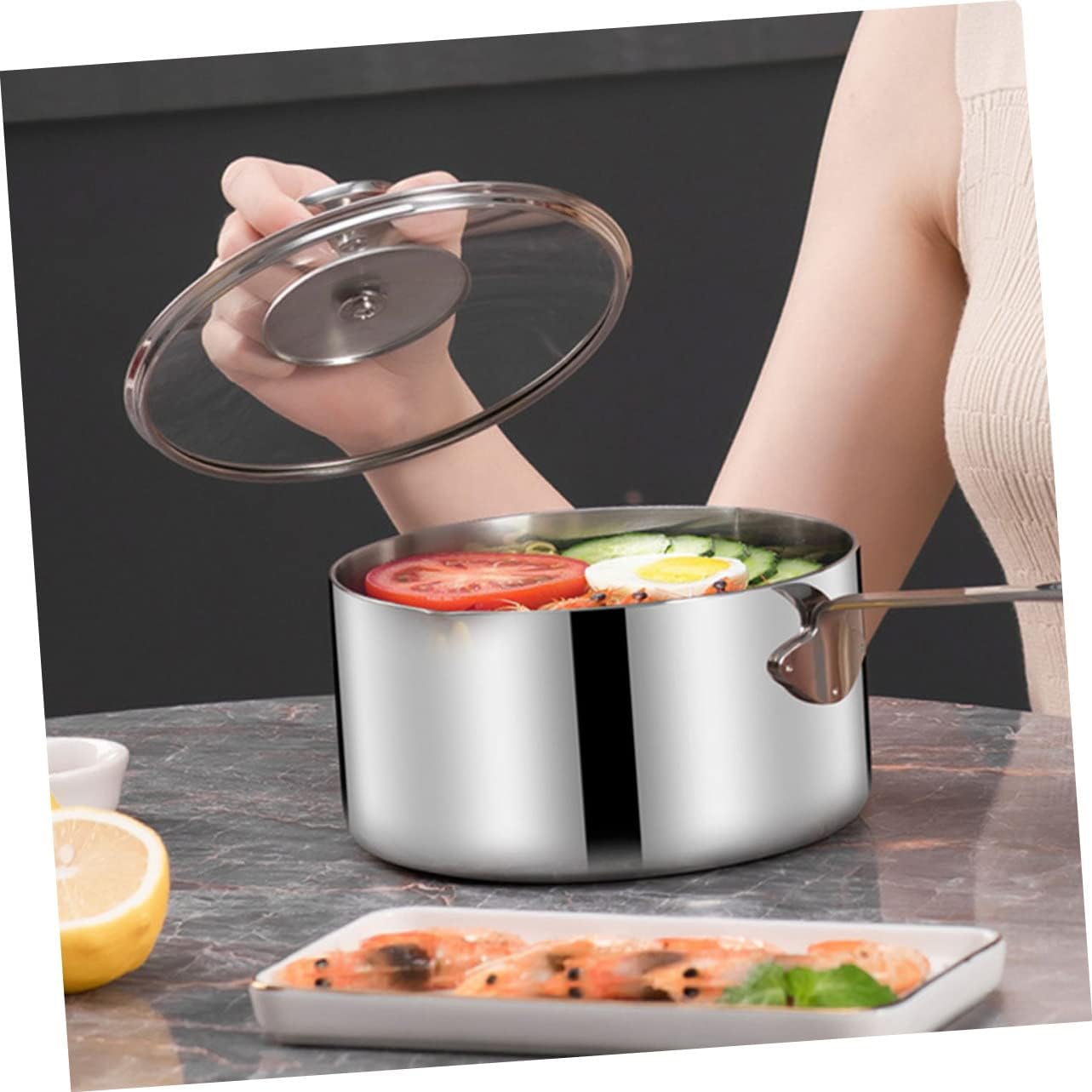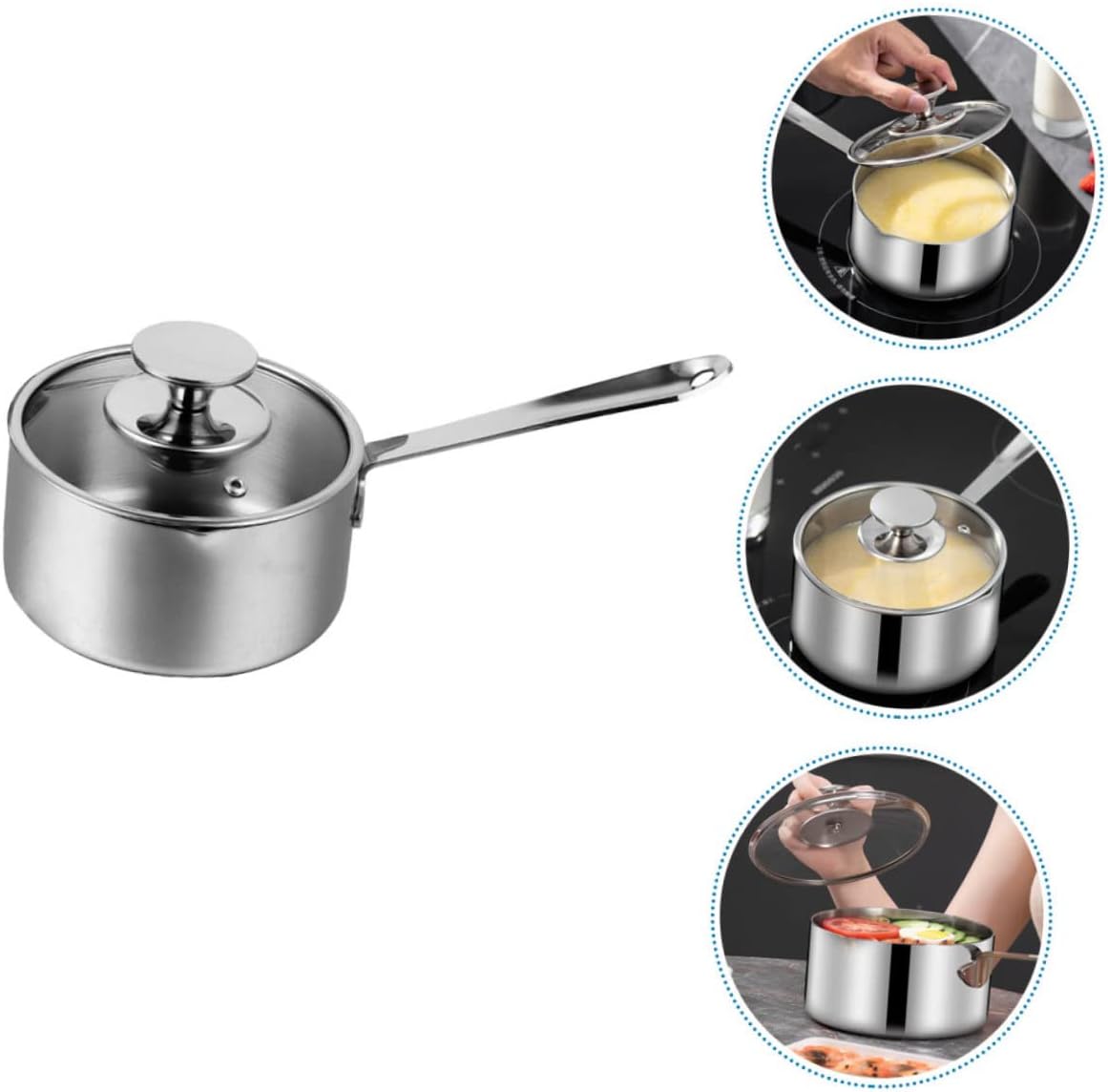 Package Include 1 x Pot with Lid Characteristics -Material:Stainless steel stovetop milk steamer - Color: Silver stainless steel stock pot - Size: 31.50X16.00X8.30cm/12.38X6.29X3.26in cooking pot for kitchen -Stainless steel construction design, healthy, cooking, ensuring optimal heat absorption, transfer and durability milk heating pot. -A soup, stew cooker. for cooking lobster, soup, pasta, etc milk saucepan. -The interior is creative design for easy cleaning, and the cooking pot is dishwasher multi-function saucepan. -This heats quickly and dissipates heat, making it for when you're boiling milk, eggs, or hot soups. Also, it's great for coffee and oatmeal food heating pot. -This soup pot is exquisitely crafted and , with long handle design, and is widely loved by people saucepan.Goods Descriptionstainless steel stock pot This deep pot is a Soup Pot, made of , and healthy, and can be used with confidence.cooking pan Soup Pot can be used long time.kitchen cooking pot It has a simple design, but very in use.stovetop milk steamer The ergonomic handle makes the grip very comfortable.soup pot Essential kitchen accessory, suitable for steaming or heating food.multipurpose saucepan You can use it to cook a delicious soup for your family
