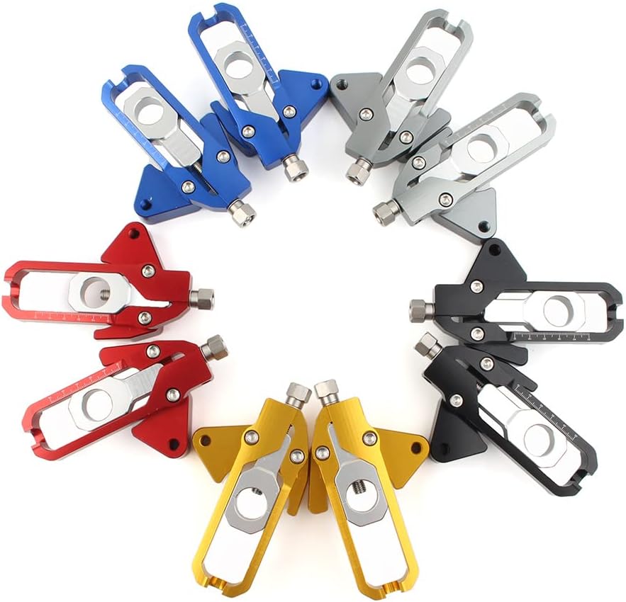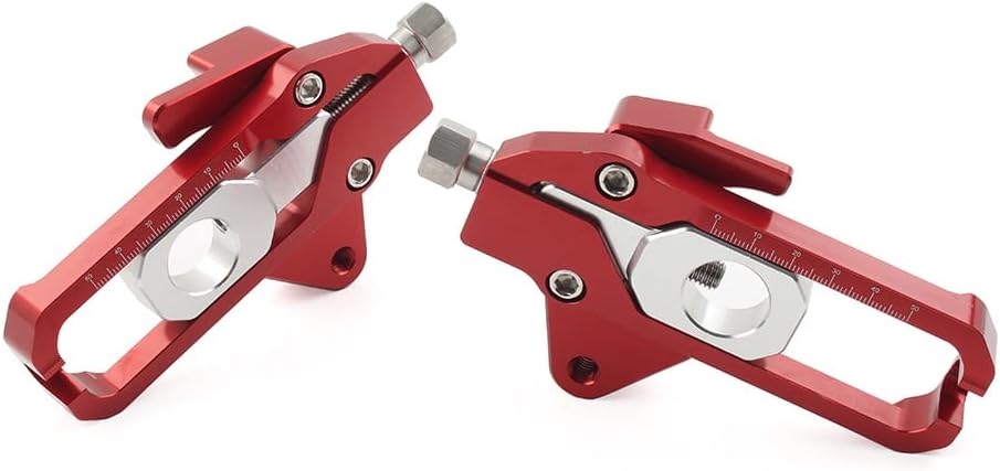 Fitment:for HONDA CB650R 2019-2020 CBR650R 2019-2020 for HONDA CB650F 2014-2016 CBR650F 2014-2016Specification:Condition: Brand NewColor: RedPlacement on Vehicle: Left & RightMaterial: 6061-T6 Billet Aluminium,CNC Machined.Features:Chain Adjusters allow for quick and precise chain adjustments that makes chain adjustments a snap.Rather than guessing the axle's position, micro measurements are now clearly shown on the laser-etched chain adjuster body.When you make an adjustment, there is a distinctive click from the adjusters.Description:The real color of the item may be slightly different from the pictures shown on website caused by many factors such as brightness of your monitor and light brightness.1 * pair Red Chain Adjusters Tensioners.