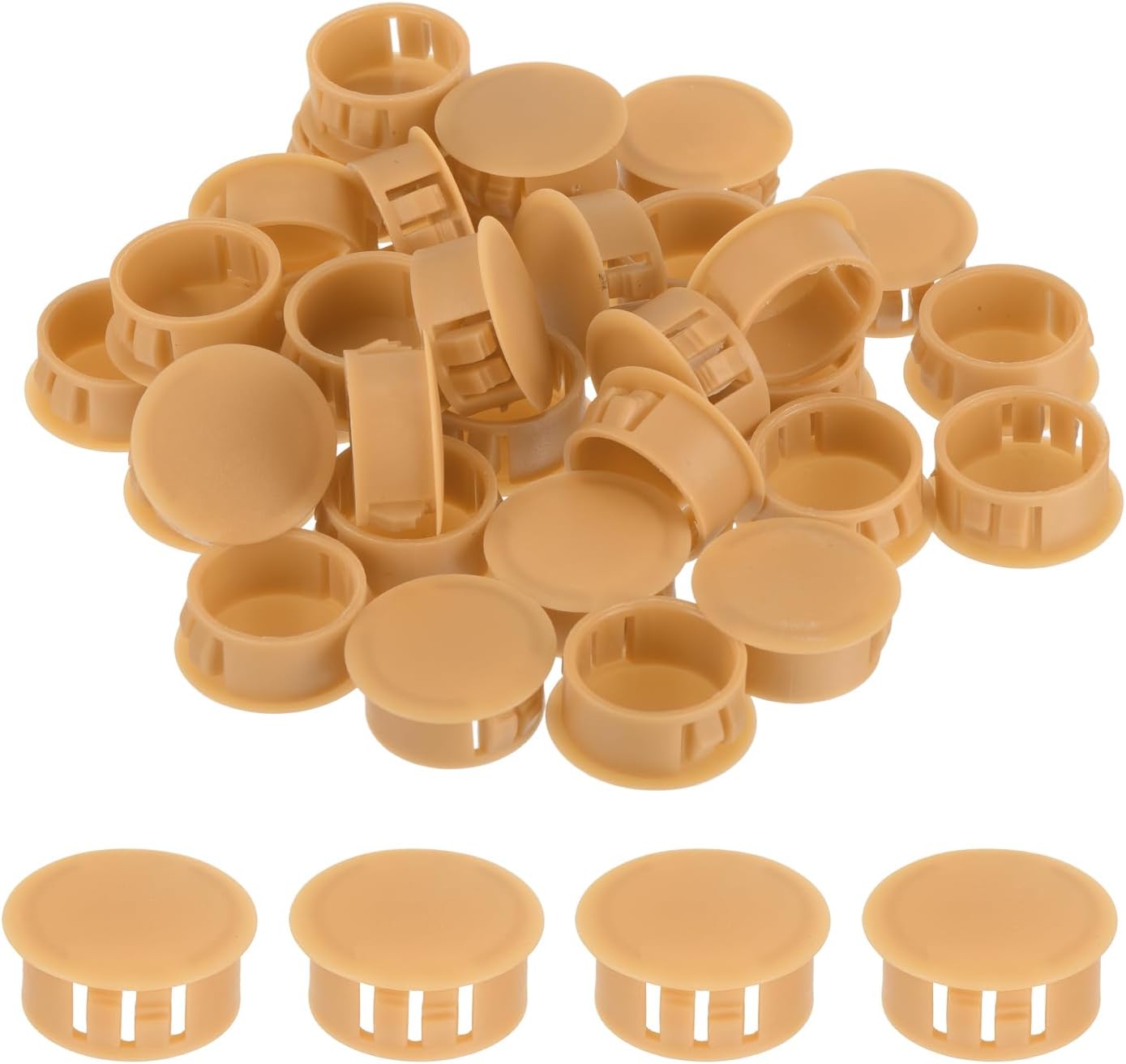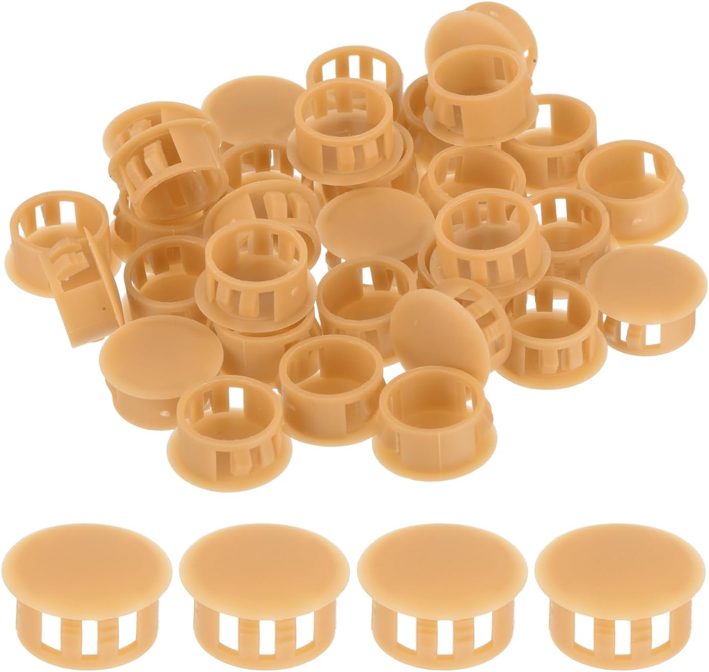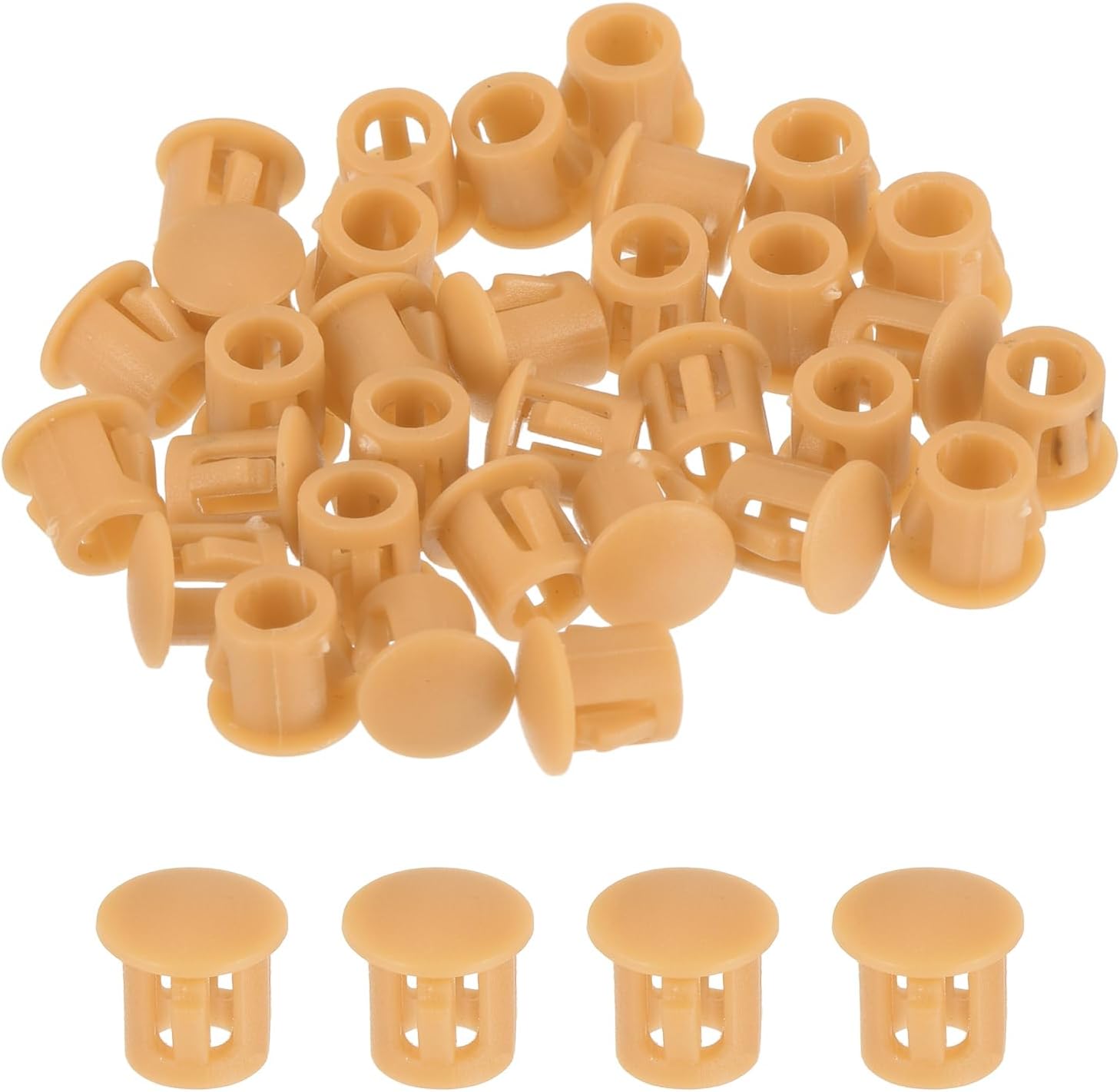 What is this?This round plastic hole plug can be applied to steel furniture, plumbing, table and chair feet, cabinets, fence posts, electrical box store holes outdoor equipment, and other places.What will I get?White Plastic Hole PlugsSize:Hole Diameter: 5mm, 3/16 InchCap Diameter: 7mm, 9/32 InchTotal Height: 7.3mm, 5/16 InchColor: WhiteMaterial: NylonIn the package: 32 Pcs x Hole PlugsAre there any advantages of the product?The White hole plugs are made of nylon and plastic. The precision of the two materials and the fasteners make them very durable and can meet the special needs of customers.How to use it?Put the appropriate size of the product on the hole you need to plug, by gently rotating to find the right angle to press down, using the buckle design firmly fixed and plug the hole.What should I notice?Before purchasing, please measure and determine the size of the hole that needs to be plugged, and select the buckle hole plug required according to the actual size.