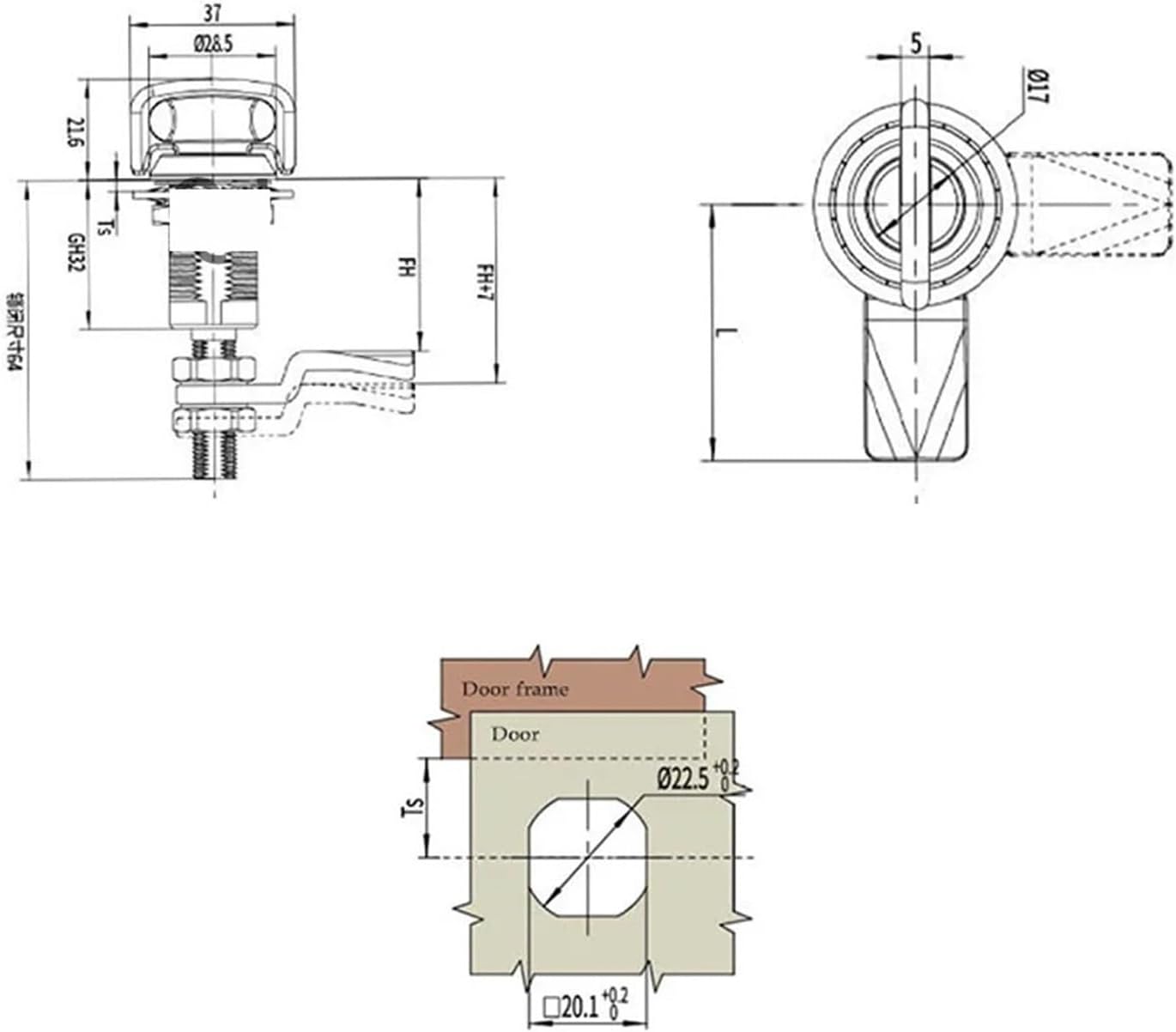 Hardware / LocksMS816 Handle Compression Lock Tightening Stainless Steel Extended Screw Tension Door 1Pcs