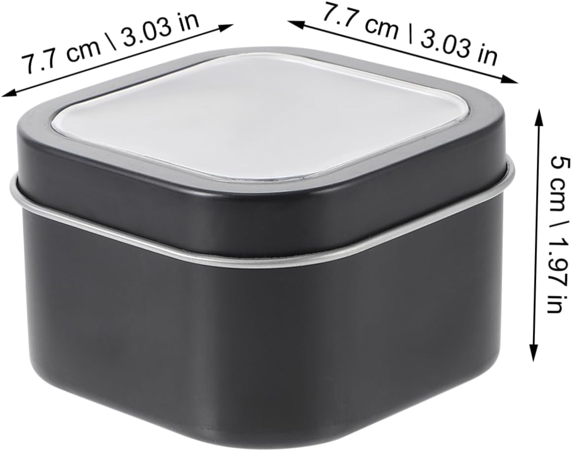 Package Include 15 x Tin Containers Features - Size: 7.70X7.70X5.00cm/ 3.03X3.03X1.97inch Metal Tins with Window Lids. - Material: PVC + Tinplate Cosmetics Box. - Capacity: 8 Ounce Tins for Candle Making. - Adopted tinplate and PVC material, not easy to get broken, durable to use DIY Candle Container. - Easy to open and close, the transparent window tops makes it easy to view the contents inside 8 Oz Tins. - The capacity is enough to store small items for quick & convenient access Square Metal Tins. - They are also applied to DIY handmade candles, and also great to store handmade lotions, creams, etc Tin Can. - They are sturdiness and durability, and a smooth surface with good touch. Tin Containers With LidsGoods InformationSquare Metal Tins Made of durable tinplate material, lovely square shape, collision resistant.Tins for Candle Making Clear view window tops cover lids, easy to open and close, you can directly see the item stored inside.Tin Can Abundant quantity can complete your demands on storage