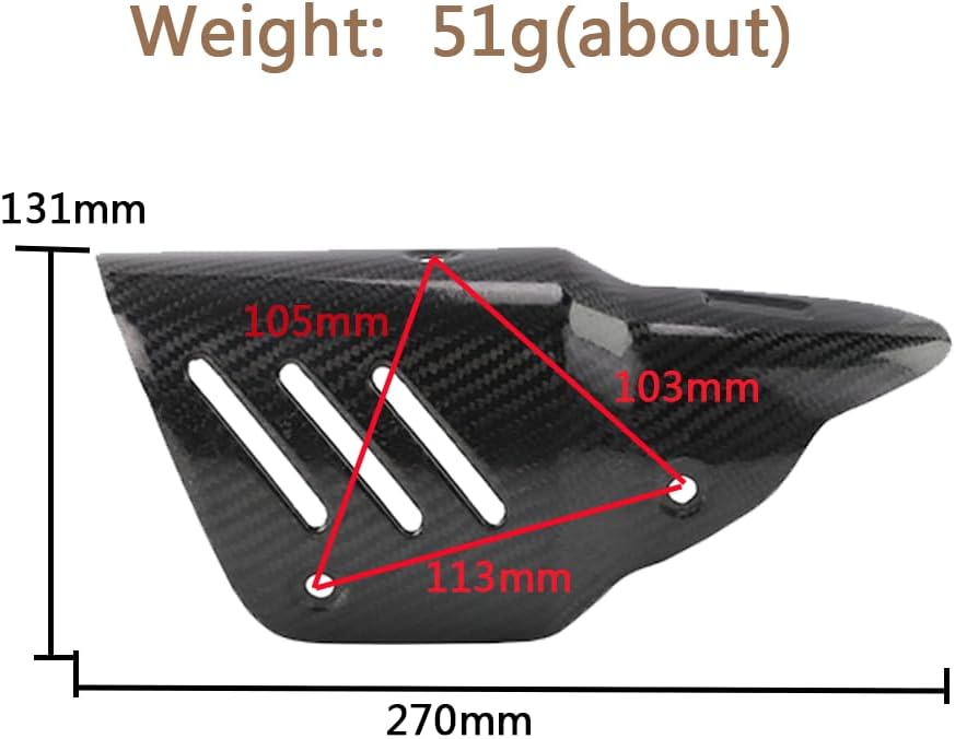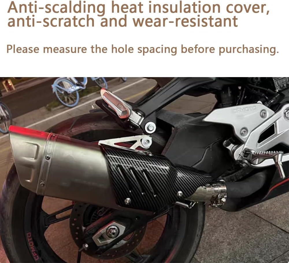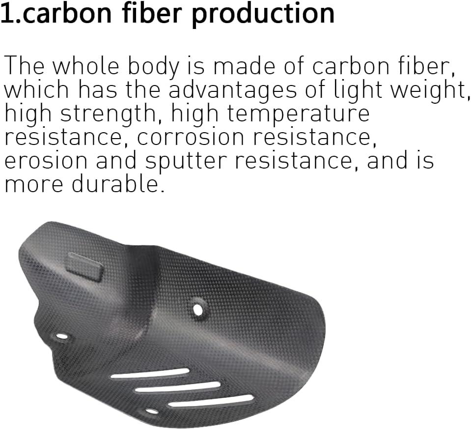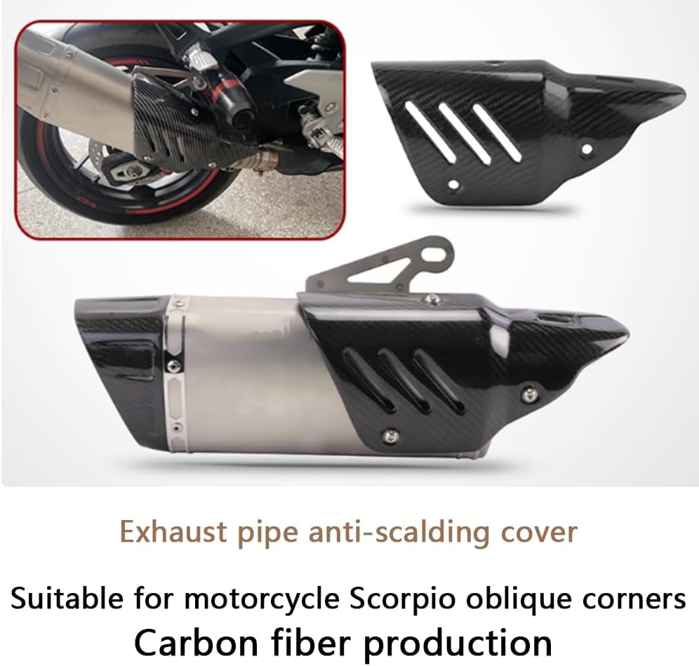 1. Core protection: Made of real carbon fiber material with excellent high temperature resistance, it can effectively block the high temperature generated when the exhaust pipe is working, prevent accidental contact burns on legs or other body parts during riding, and also prevent accidental contact injuries to passers-by and pets when parking. 2. Durable protection: It has excellent anti-scratch, anti-corrosion and wear-resistant properties. It can resist sand and gravel splashes, rain erosion and daily scratches. It is not easy to fade, deform or be damaged after long-term use, extending the appearance life of the exhaust pipe. 3. Appearance upgrade: The texture of carbon fiber is delicate and sporty. After installation, it can improve the overall visual effect of the motorcycle and make the vehicle more combat-friendly and modified. 4. Protect the exhaust pipe: While protecting the outside, it can also reduce the time the exhaust pipe is directly exposed to the external environment, reduce the probability of being scratched and corroded by foreign objects, and indirectly protect the original exhaust system.